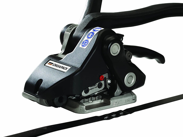 · 免用鐵扣,采用三點(diǎn)上下沖模咬合,利用上下沖模機(jī)構(gòu)將鋼帶打出三個(gè)陰陽扣互相咬合,抗斷裂強(qiáng)度可達(dá)85%,相較傳統(tǒng)鐵扣結(jié)合更加強(qiáng)韌。